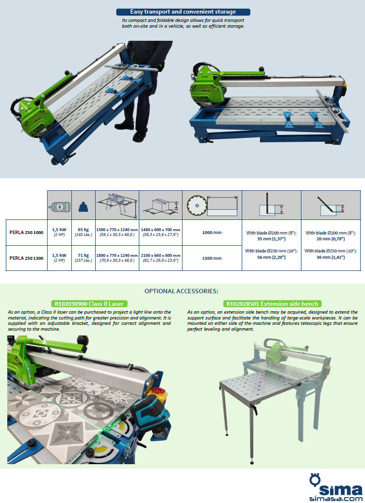 SIMA Perla 250 1000 / 1300 Elektrische Feinsteinzeug-Schneidmaschine