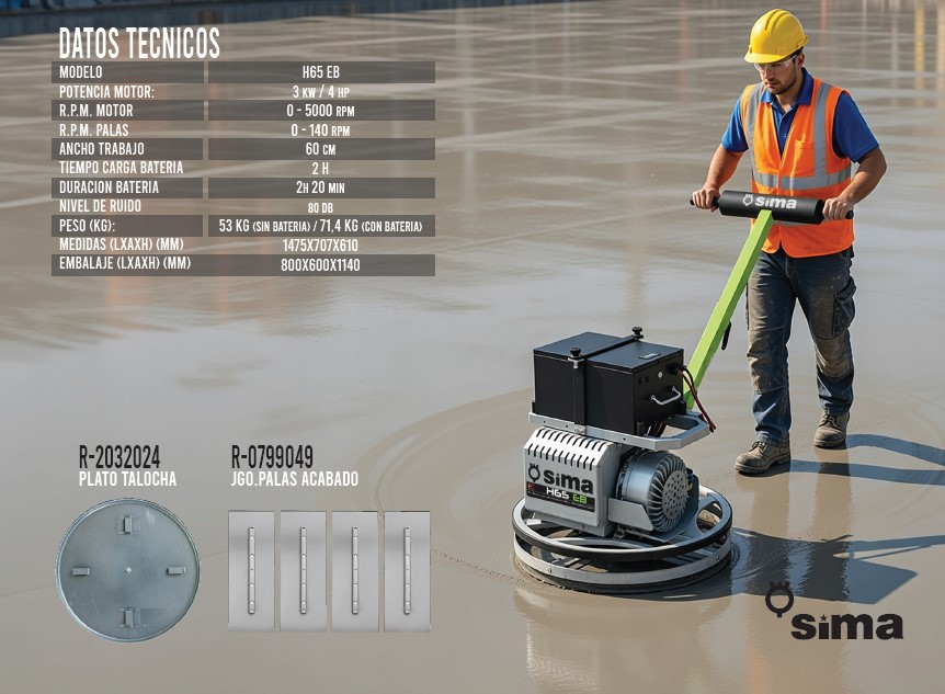 El HALCÓN 65 EB es una fratasadora eléctrica con batería 58,4 V y 40 A . Idónea para espacios sin ventilación que evita la intoxicación por humos.