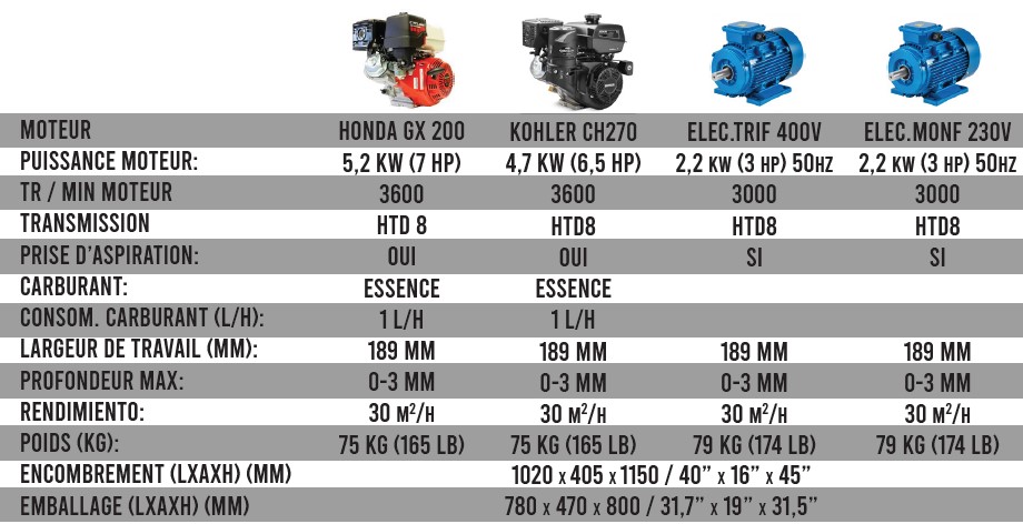 Profondeur de rabotage réglable par volant. Dispositif rapide de levage du tambour pour éviter les accidents et permettre le déplacement de la machine en marche.