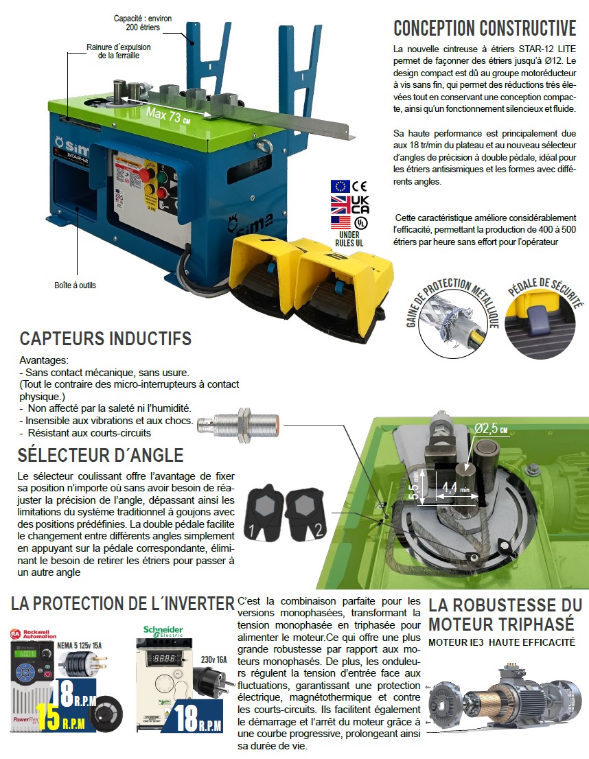 STAR-12 LITE est une cintreuse d’étriers portable conçue pour maximiser la productivité, la précision et la sécurité en atelier ou sur chantier. Son design compact et sa technologie de contrôle avancée permettent de fabriquer des étriers jusqu’à Ø12 mm avec un rendement élevé et un effort minimal pour l’opérateur.
